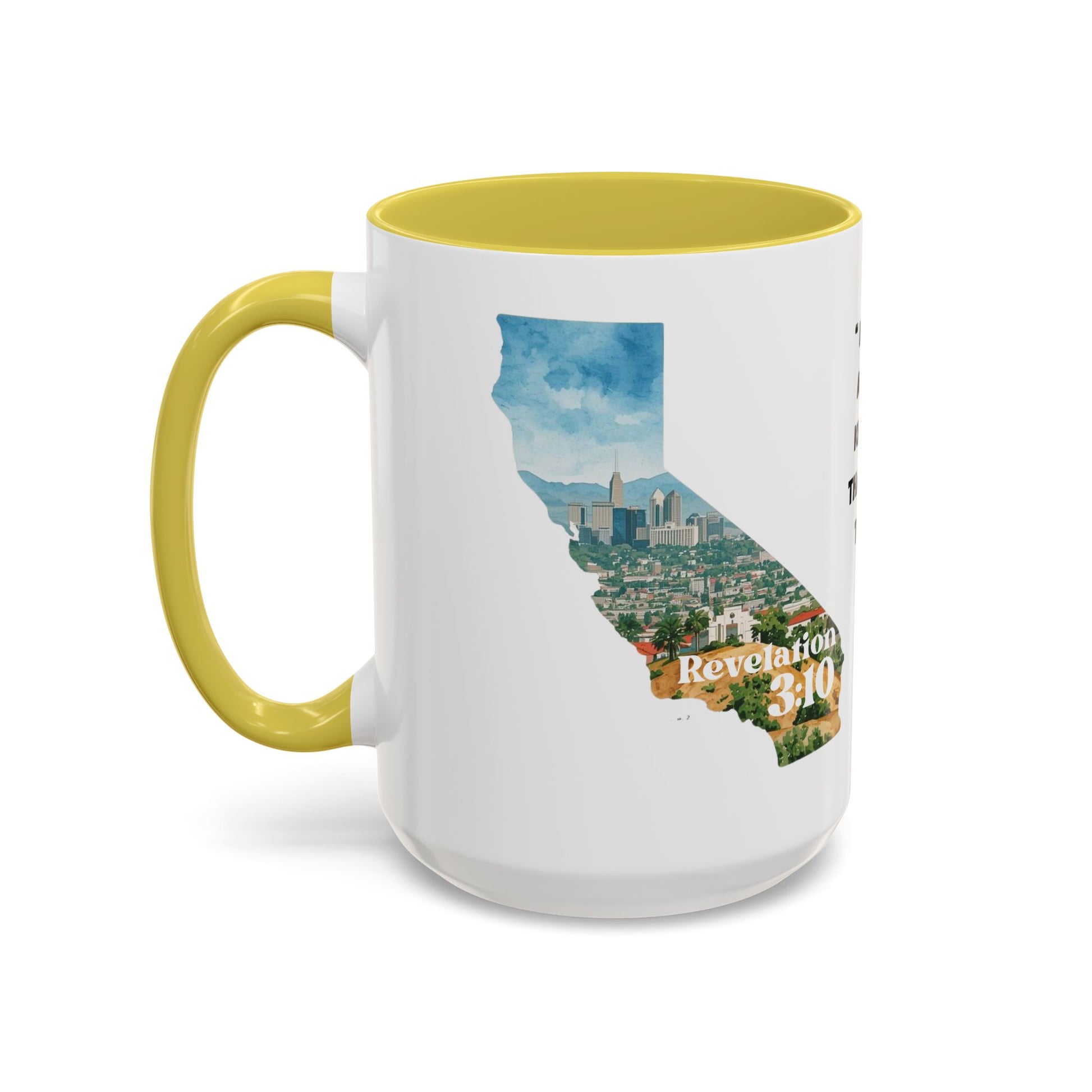The Los Angeles CA Colorful Mug features Revelation 3:10 with vibrant colors, making it a perfect addition to your morning routine or as a gift for the spiritually inclined. This mug is suitable for both dishwasher and microwave use, and with 12 color options for the handle and interior, you can customize it to your liking. The glossy ORCA coating ensures a brighter color transfer, making this mug a durable and stylish choice for any occasion.
