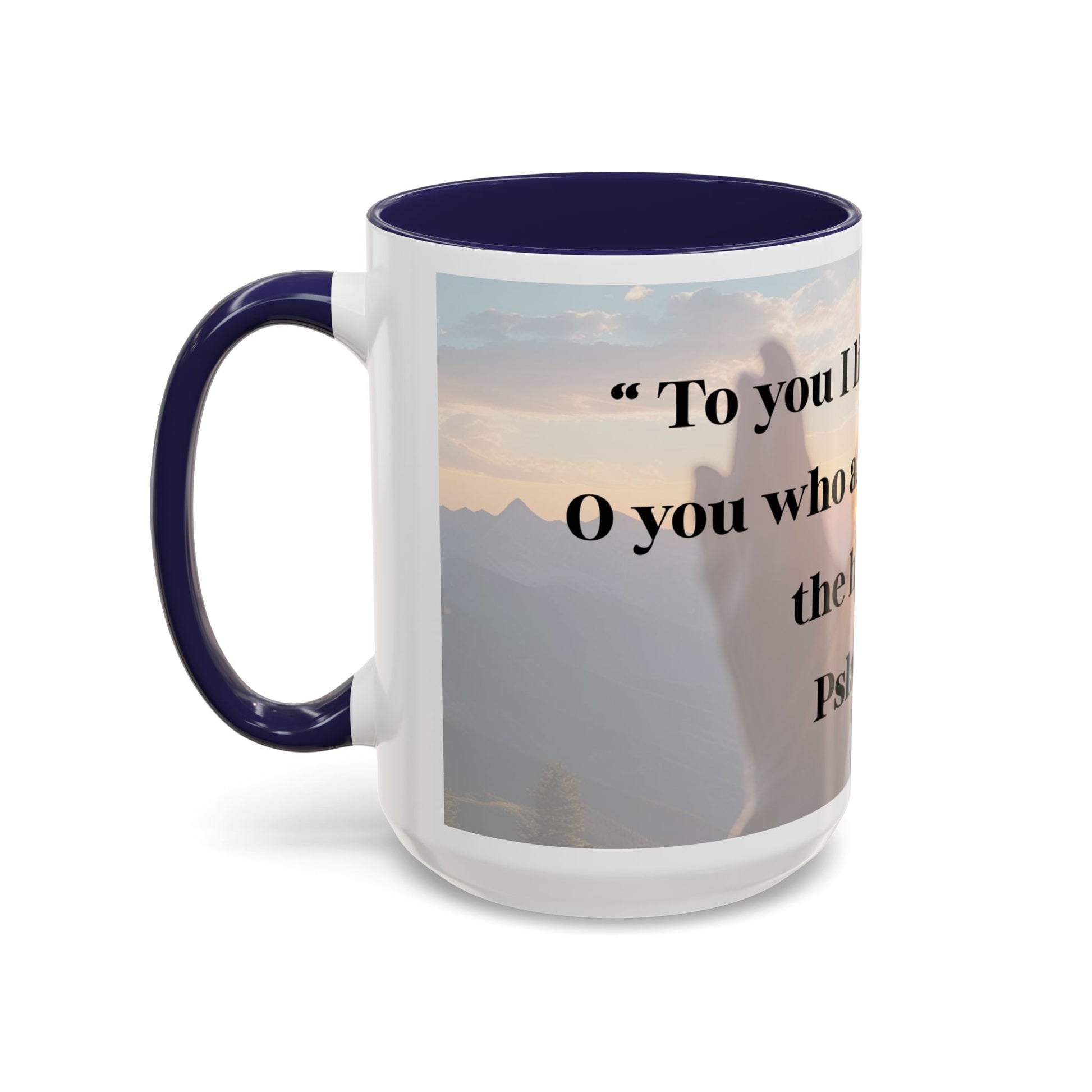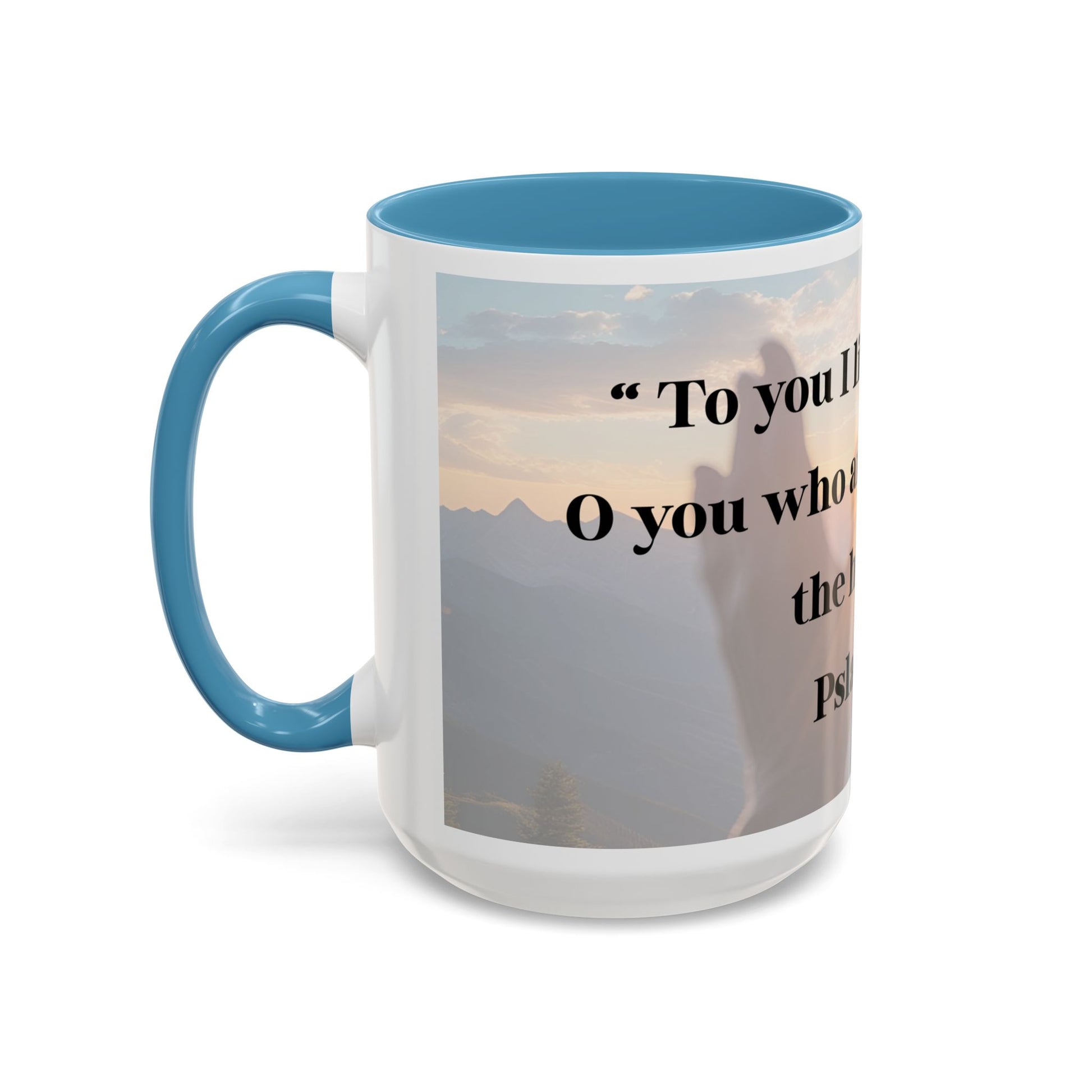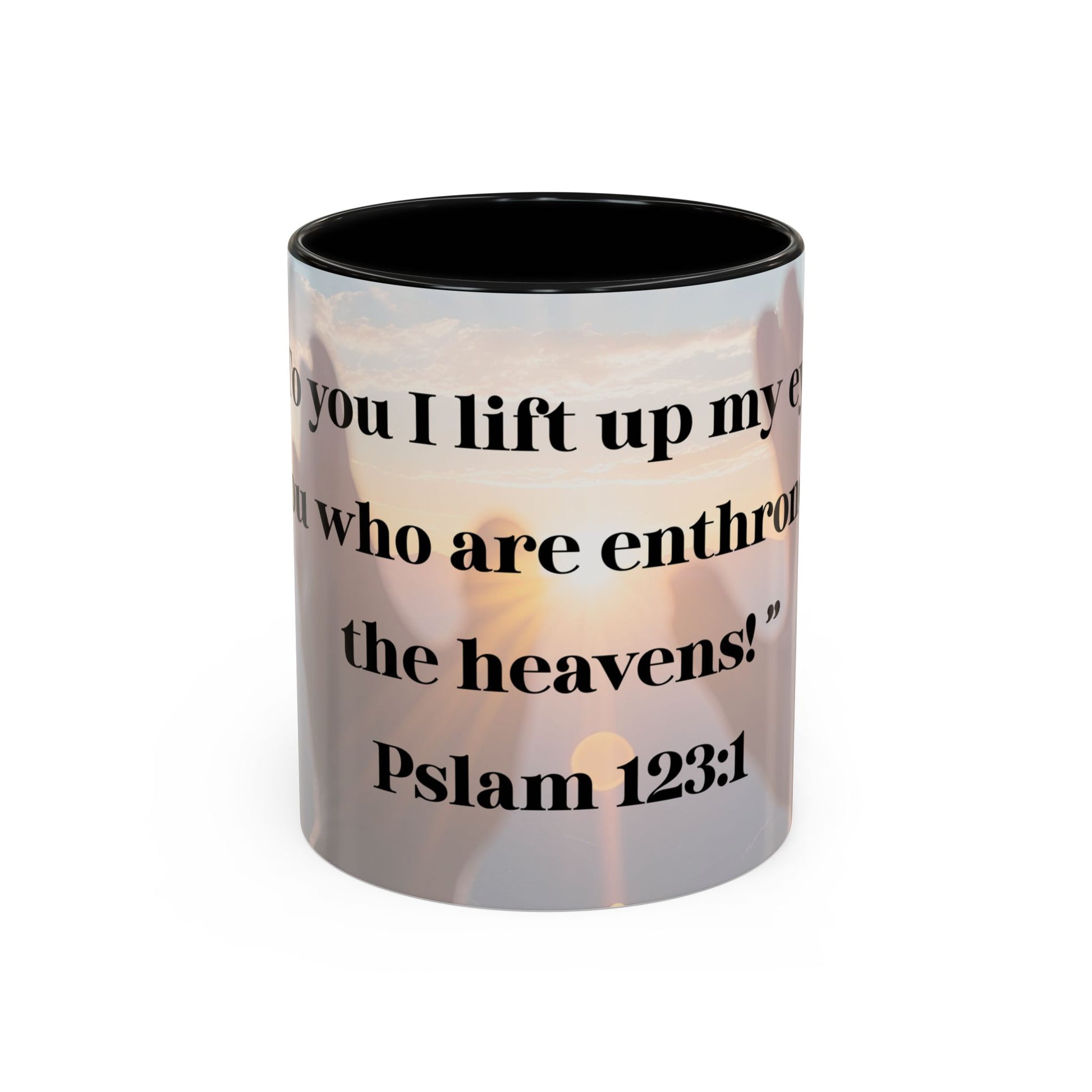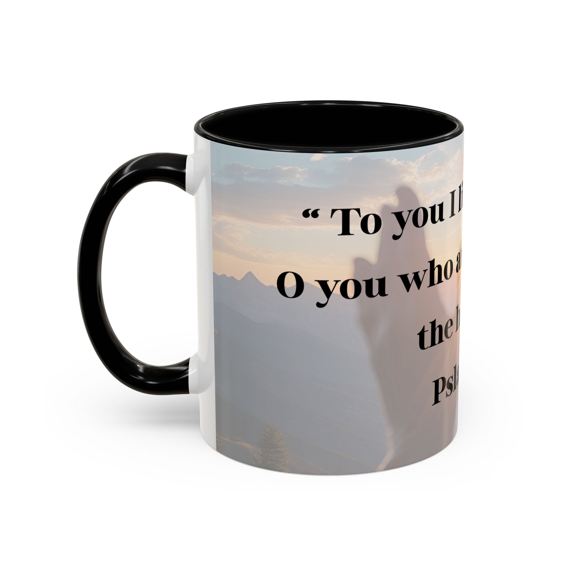 Start your mornings with a peaceful reminder of God's presence with this Psalm 123:1 design mug. Perfect for those seeking solace and inspiration in their daily routines. Ideal for religious individuals looking to incorporate faith into their everyday life. Great for gifting during Christmas, Easter, Mother's Day, or as a birthday present.
